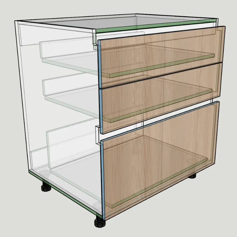 Usando nuestros módulos dinámicos evitarás cálculos a mano. Al arrastrarlos en SketchUp, el modelo genera automáticamente los despieces y las dimensiones exactas. Sabrás el costo real de inmediato, evitando comprar material de más o poner dinero de tu bolsillo.